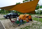 넓은 사이트에서 텐트와 타프를 설치하는 것은 별로 어렵지 않은데 좁은 곳에서 텐트와 타프를 적절하게 세팅해서 최대한의 활용공간을 만들어내는 것은 여전히 어렵습니다. 사이트를 구성해놓은 것만 봐도 고수인지 하수인지 금방 눈치를 채겠더군요. 저는 그야말로 하수입니다.