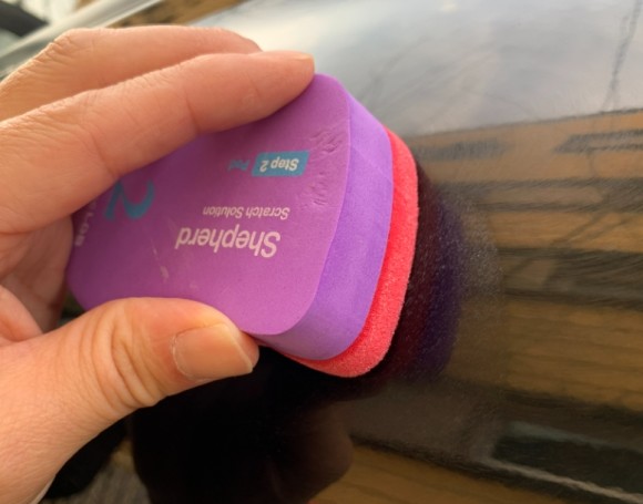 이 제품의 단점은, 이미 충분히 언급했지만 스크래치가 깊은 경우 세밀한 연마 성능으로 인해 빠른 효과를 보기 어렵다는 점입니다. 이 제품의 특성을 감안한다면 문제가 될 것이 없지만 빠른 효과를 기대하는 차주님들께는 분명 답답한 부분으로 작용할 수 있습니다. 셰퍼드 스크래치 솔루션을 보완할 방법을 찾는다면, 1단계에 좀 더 강한 연마력을 지난 샌딩패드로 더 빠르게 스크래치를 제거하고, 2단계에 현재의 1단계에 적용된 샌딩패드로 샌딩자국을 더욱 미세하게 만들고, 3단계에 현재의 2단계 시스템을 적용한다면 깊은 스크래치에 좀 더 빠르고 효율적인 대응이 가능합니다.