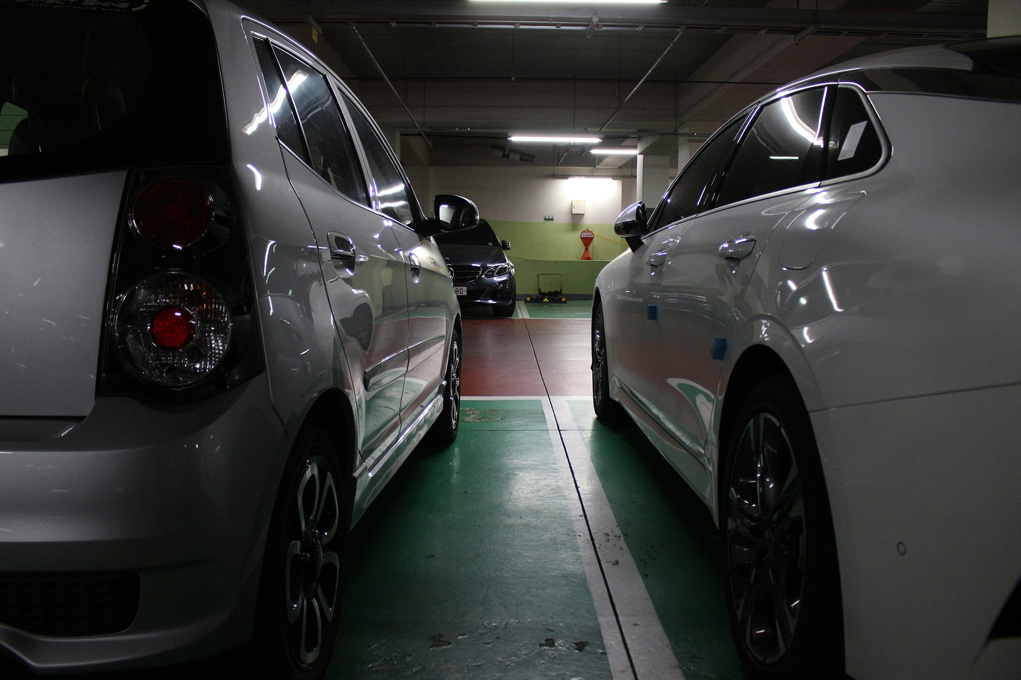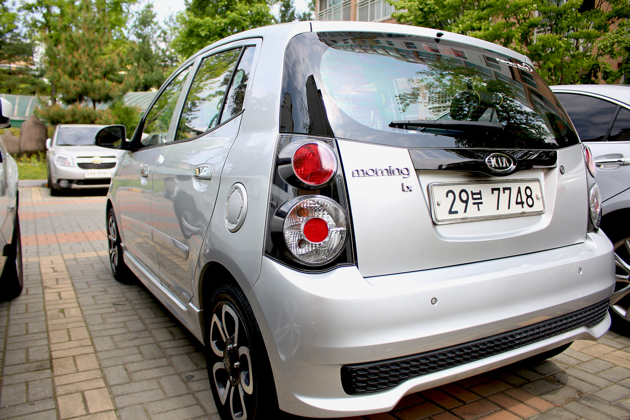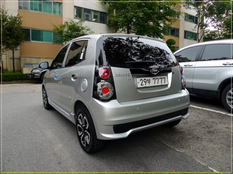 ☞ 아래는 2010년 출고 당시의 모닝 사진입니다. 위 사진과 거의 같은 각도에서 찍힌 사진이 있네요. 카메라 기종, 하늘의 밝기, 사용한 왁스(2010년 당시 자이몰 티타늄, 위 사진에서는 블랙화이어 SiO2 스프레이 실런트 사용)의 차이가 있음을 감안해야 합니다.