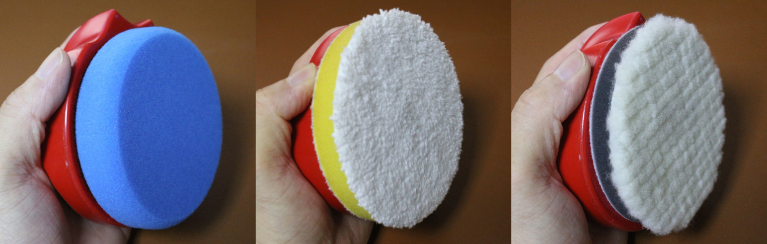 그런데 실상 우리는 어떤 패드를 쓰고 있나요? 마이크로화이버 타월을 접어쓰거나, 왁싱용 패드로 문지르거나, 조금 더 나으면 폴리싱용 폼패드 정도에 머물고 있습니다. 이런 한정된 패드를 쓰고 핸드폴리싱의 한계를 지적하는 걸 보면 안타까울 때가 많습니다. 물론 핸드폴리싱에 한계가 있다는 것은 부인할 수 없지만 좀 더 다양한 패드를 핸드폴리싱에 적용하면 그 한계를 분명 넓힐 수 있습니다.