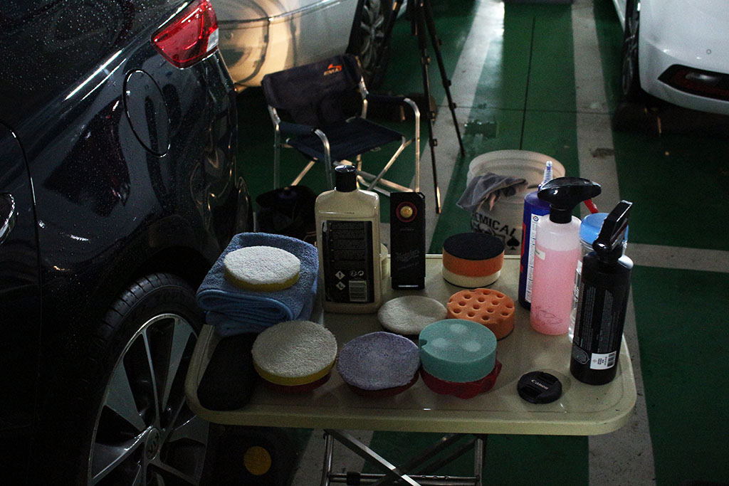 다행히 뒷도어 패널은 테러 수준의 스크래치는 없었지만 그렇다고 한두 번의 컴파운딩으로는 잡히지 않는 스크래치들이 곳곳에서 저의 발목을 잡았습니다. 초반엔 Hydrotech Cyan 패드로 강하게 밀어부쳐 봤지만 체력소모가 심해져서 폼드 울패드로 바꿔서 작업했습니다.