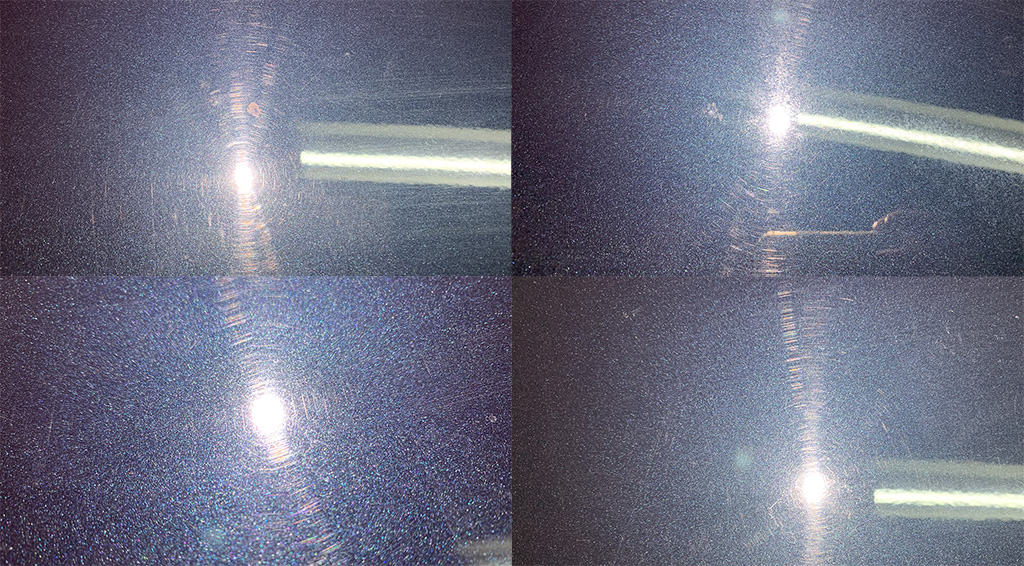 스월도 스월이지만 형광등을 직접 비추지 않아도 보이는 기다란 스크래치들 많습니다. 간접 조명에서도 보이는 흠집은 깊이가 있는 흠집입니다.