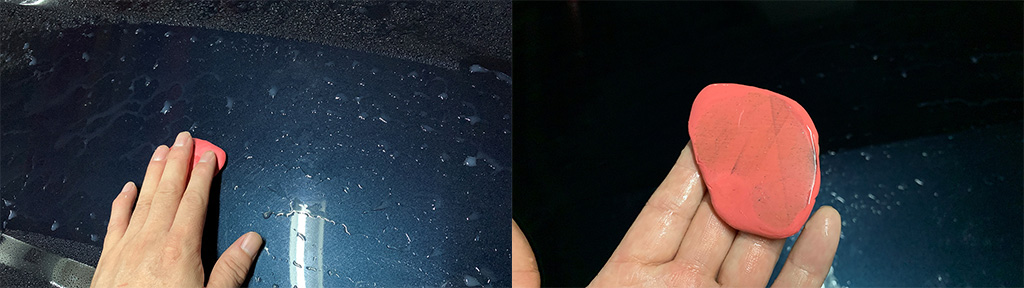 10일차에 마침내 대망의 보닛 패널을 맞이했습니다. 보닛 패널이야말로 광택의 메인 이벤트죠. 물론 다른 패널들도 하나같이 메인 이벤트로 작업을 해왔지만 보닛 패널은 그래도 더 꼼꼼하게 작업하려고 노력했습니다. 측면 패널에서는 거의 생략했던 클레잉 작업도 했지요. 예상한 대로 조금만 문질러도 클레이바가 금방 더러워졌습니다.