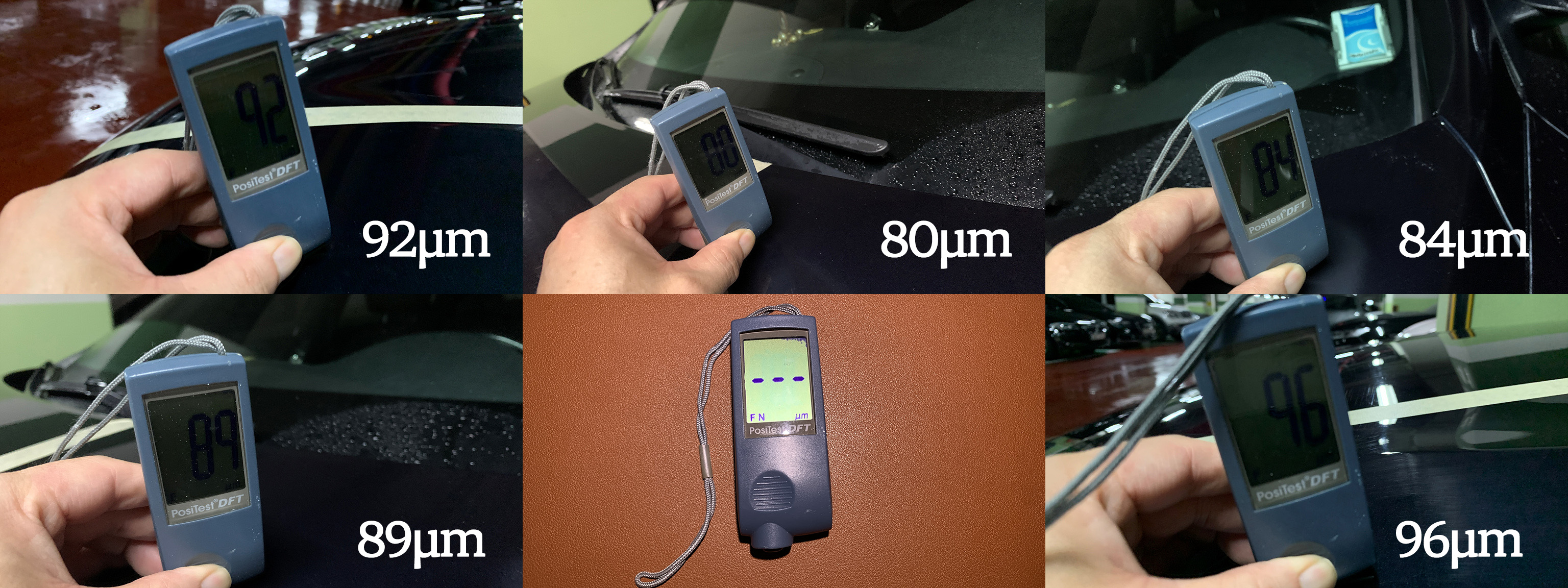 그동안 워낙 얇은 두께의 패널들을 여러 번 경험하다보니 보닛의 도장두께는 상대적으로 양호한 두께였습니다. 80미크론 초반으로 찍히는 부위들이 몇 곳 있었지만 대체로 90미크론 전후의 두께를 보였습니다.