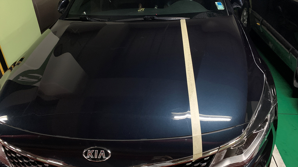 마스킹 테잎을 이용해 작업 부위를 구분했습니다. 아래 처럼 보닛을 길게 4등분 했습니다. 면적이 넓다보니 저렇게 구분하지 않으면 연마가 덜 된 부위가 꼭 생기더라구요.